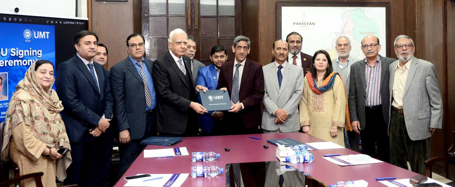 University of Management and Technology (UMT) and Government College University (GCU) Lahore have signed a memorandum of understanding. The objective of the MoU is to promote faculty and student exchange including research and development collaboration, exchange of library resources between the two educational institutions so that the two institutions can jointly find the best solutions to the challenges faced by country