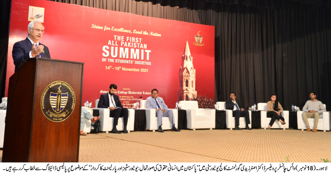 As many as three panel discussions were held here on Tuesday at the Government College University Lahore on the topics related to tolerance, gender mainstreaming and sustainable development goals (SDGs) besides dialogue on minority rights for inclusive and prosperous Pakistan.Member Punjab Assembly Mahindar Pal Singh, Vice-Chancellor Prof. Dr. Asghar Zaidi, journalist Salman Abid, Prof. Ashok Kumar Khatri and rights activist Samson Salamat addressed the dialogue on minority rights, while Ms Muneeza Hashmi, the chairperson of Lahore Arts Council, and Mushaal Hussein Mullick, the Chairperson of ...
